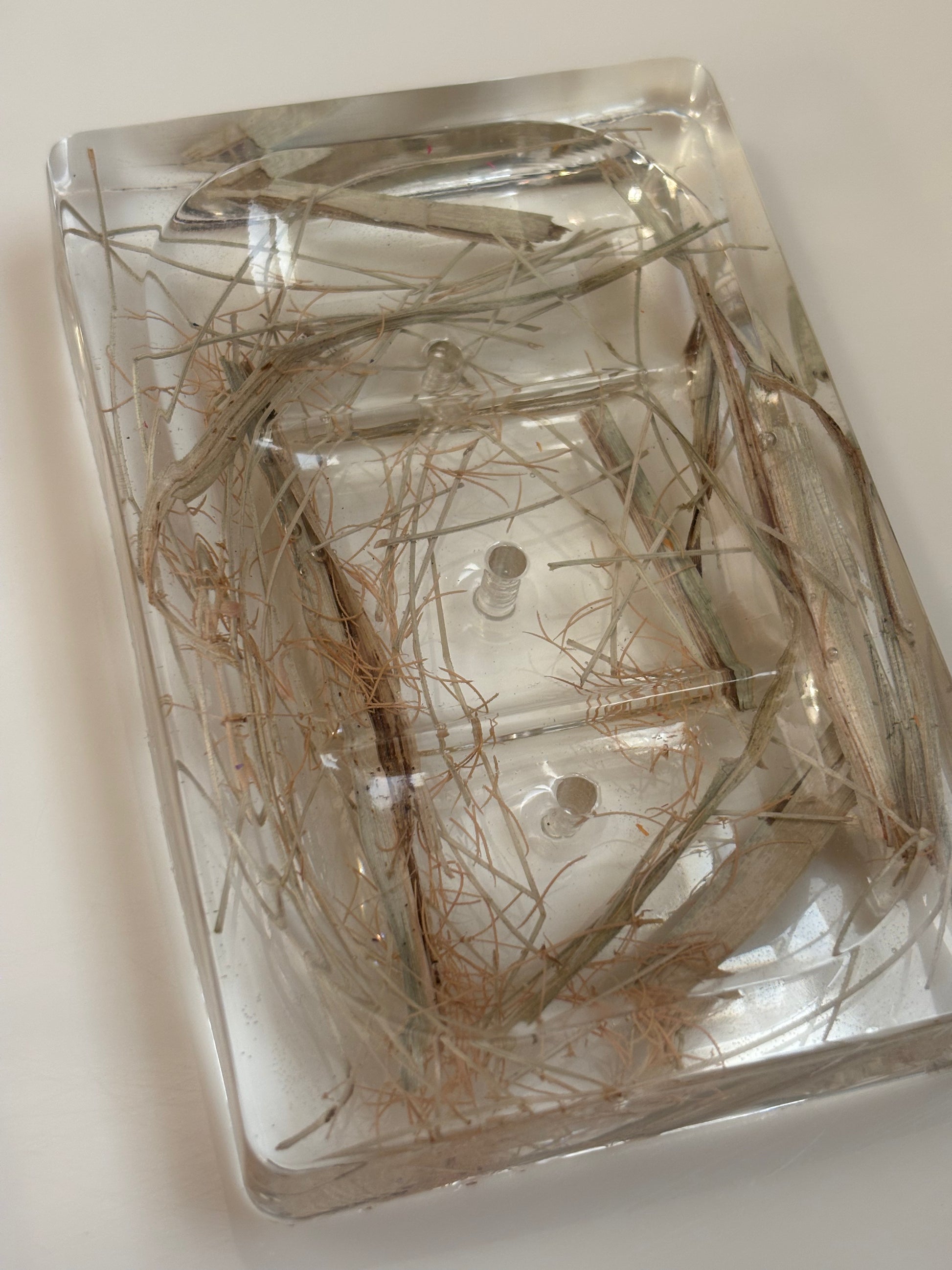 Clear resin soap dish with dried plants inside. Simple, natural, and one of a kind.